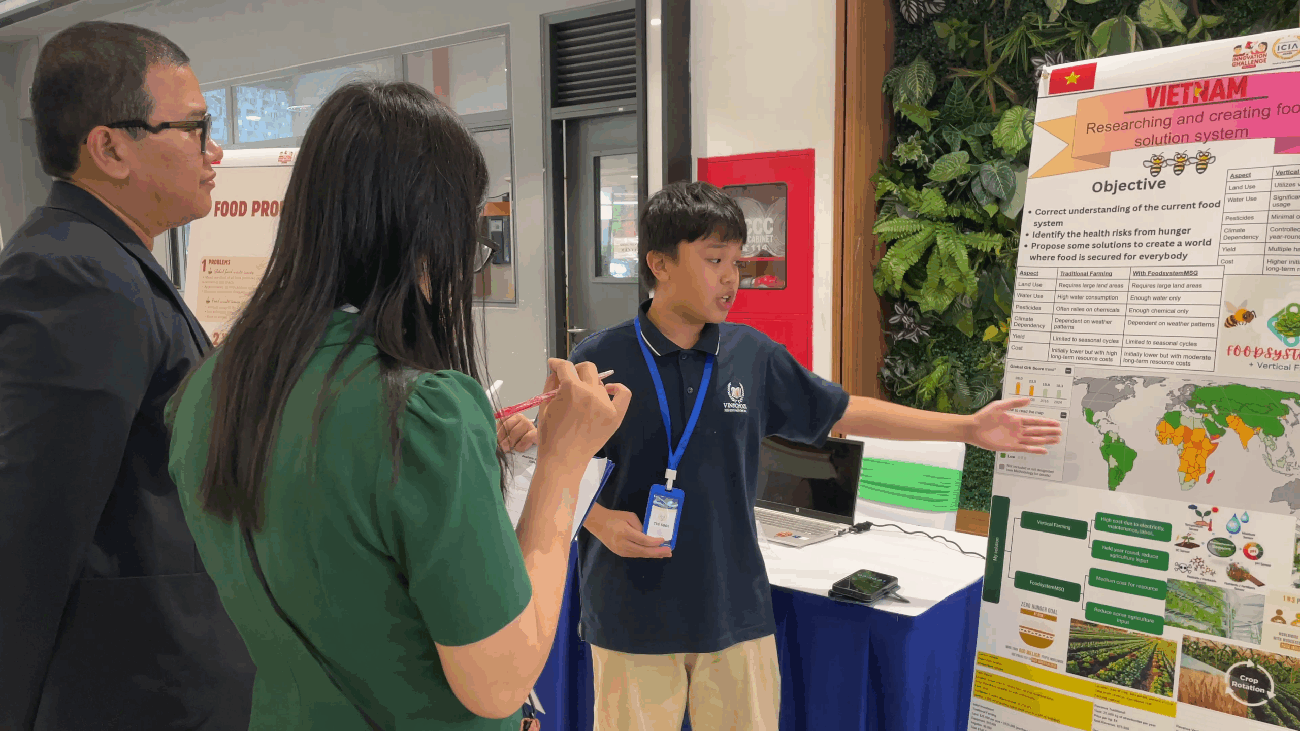 Exhibition, presentation, and live assessment at UEH University, HCMC.